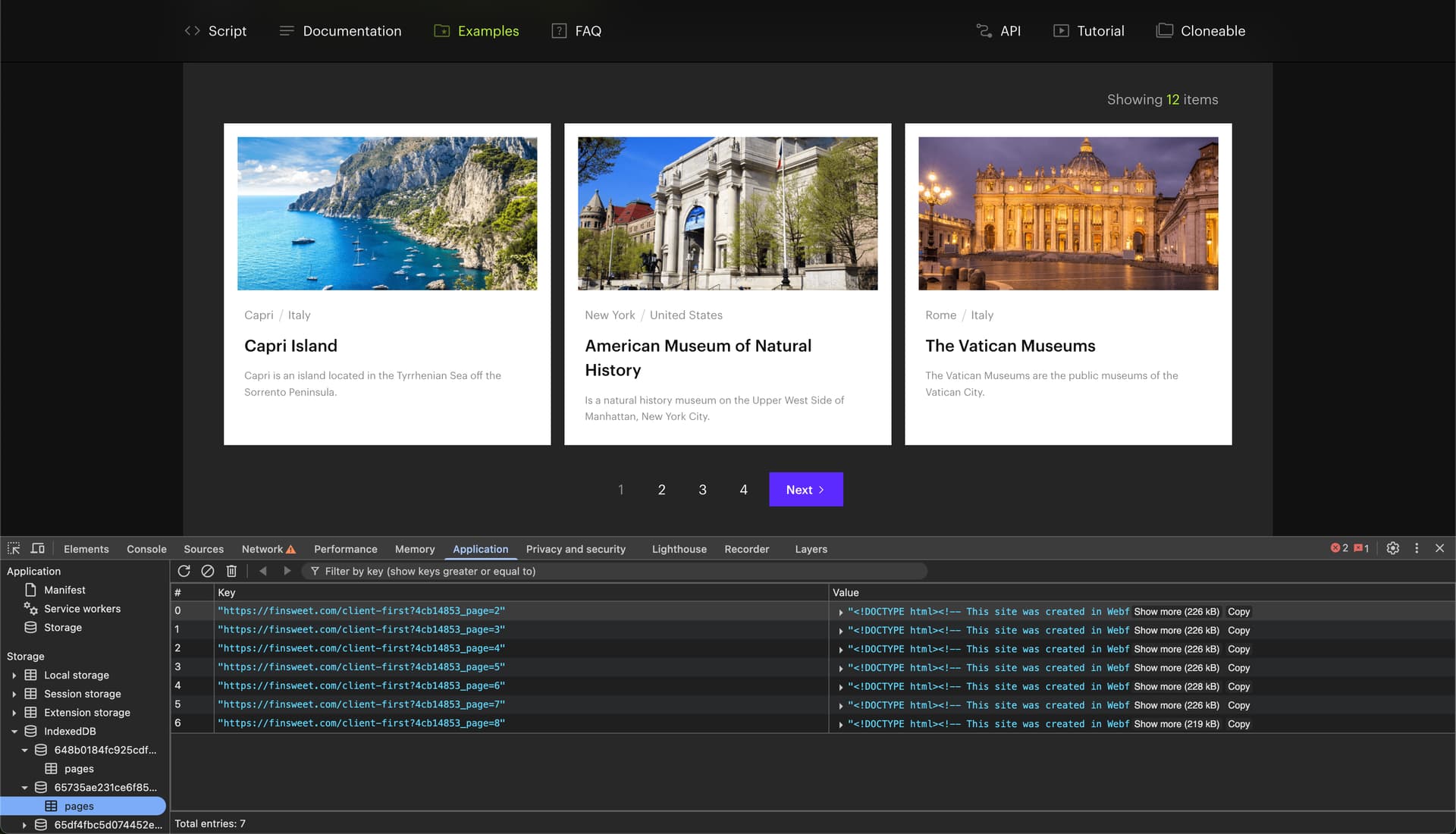 - Initialized CMS Load manually (as well as other Attributes) → Here you can see how the pagination gets hidden by the script, depending on the cache.